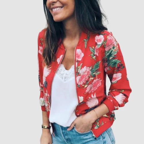 Hannah – Langermet Jakke med Blomstermønster og Glidelås