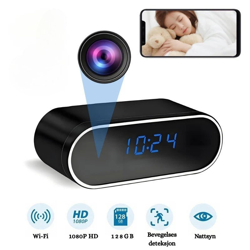 InvisiCam - Diskret HD-klokkeovervåkingskamera med bevegelsesdeteksjon og nattsyn