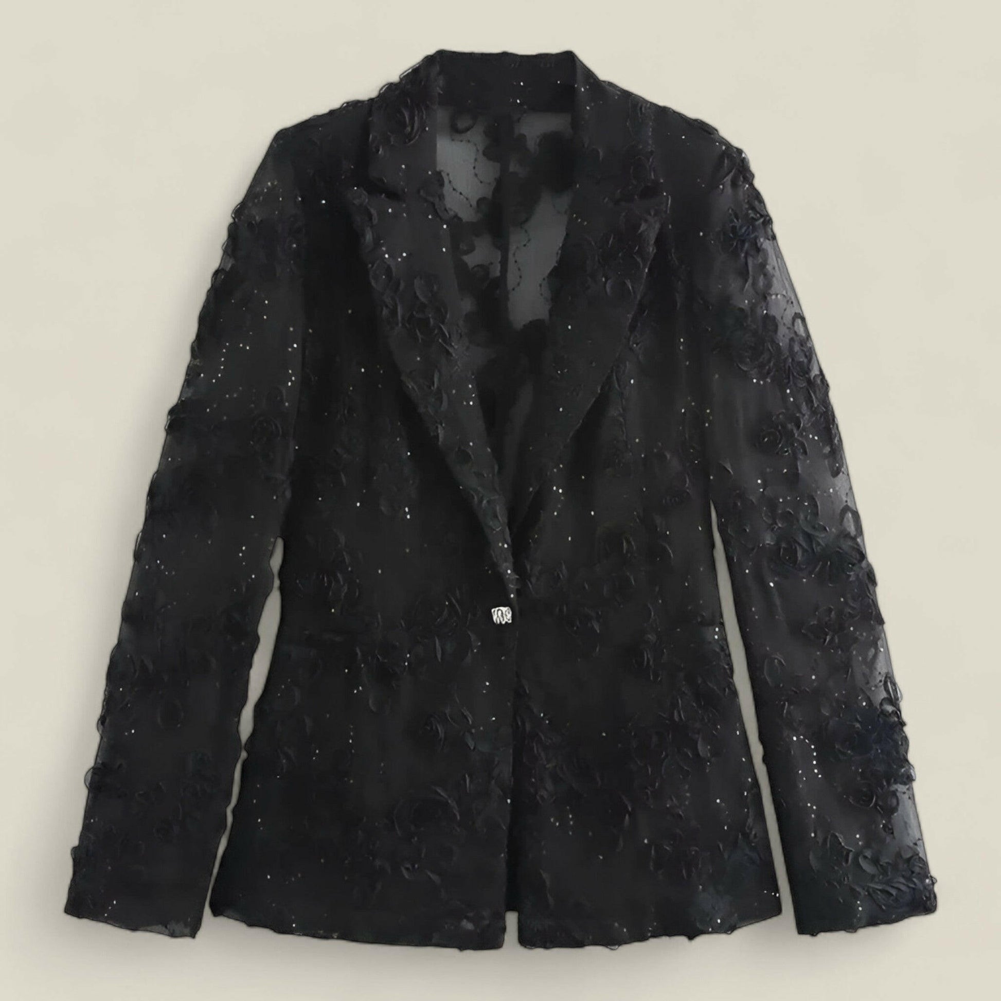 Dette sofistikerte settet består av en langermet jakke med utsøkte perleutsmykninger. Perlene fremhever jakkens raffinerte design og gir et luksuriøst preg til ethvert antrekk. Enten det er til en avslappet utflukt eller en formell anledning, er dette settet det perfekte valget for deg som setter pris på diskré eleganse.