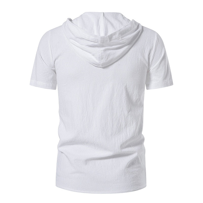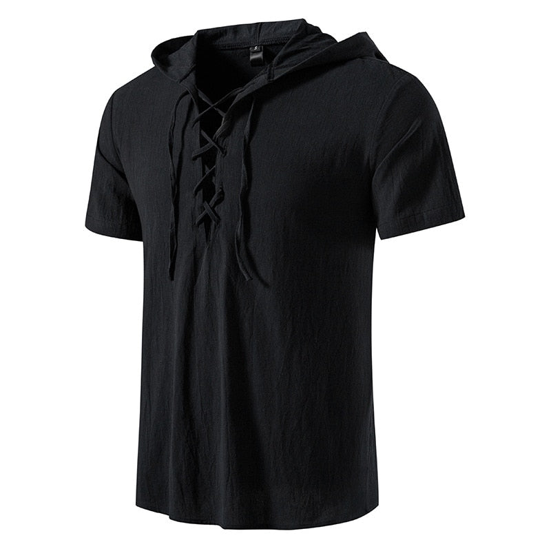 Jaxon T-Shirt er den perfekte blandingen av avslappet stil og moderne design. Med korte ermer, hette og unike bånd i halsen gir denne plagget et særegent preg til hverdagsgarderoben din, samtidig som den sørger for maksimal komfort. Den er laget av et lett og pustende materiale og passer perfekt til varme dager og uformelle utflukter.