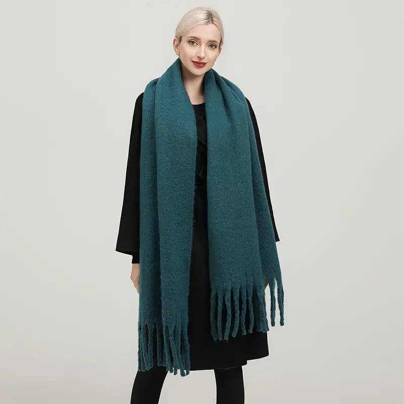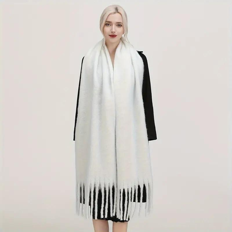 Jennifer - Oversized skjerf med frynser design for maksimal dekning og varme