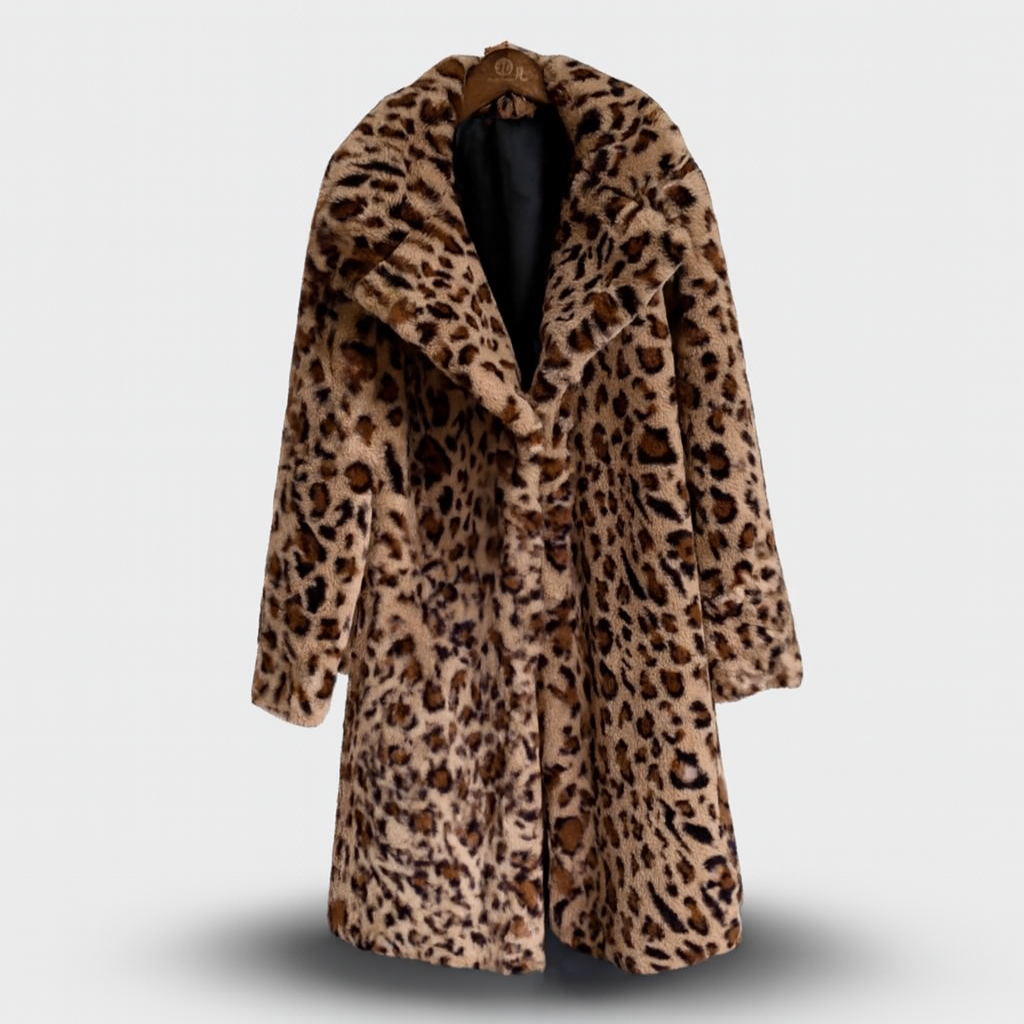 Johanna – Langermet Leopardmønstret Frakk med Lommer