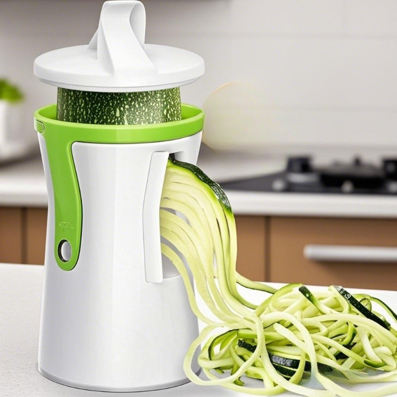 Denne manuelle spiralkutteren hjelper med å lage tynne, krøllete grønnsaksstrimler og ost på få sekunder. Den kompakte kroppen gjør den enkel å oppbevare og perfekt for raske skjæreoppgaver på kjøkkenet.