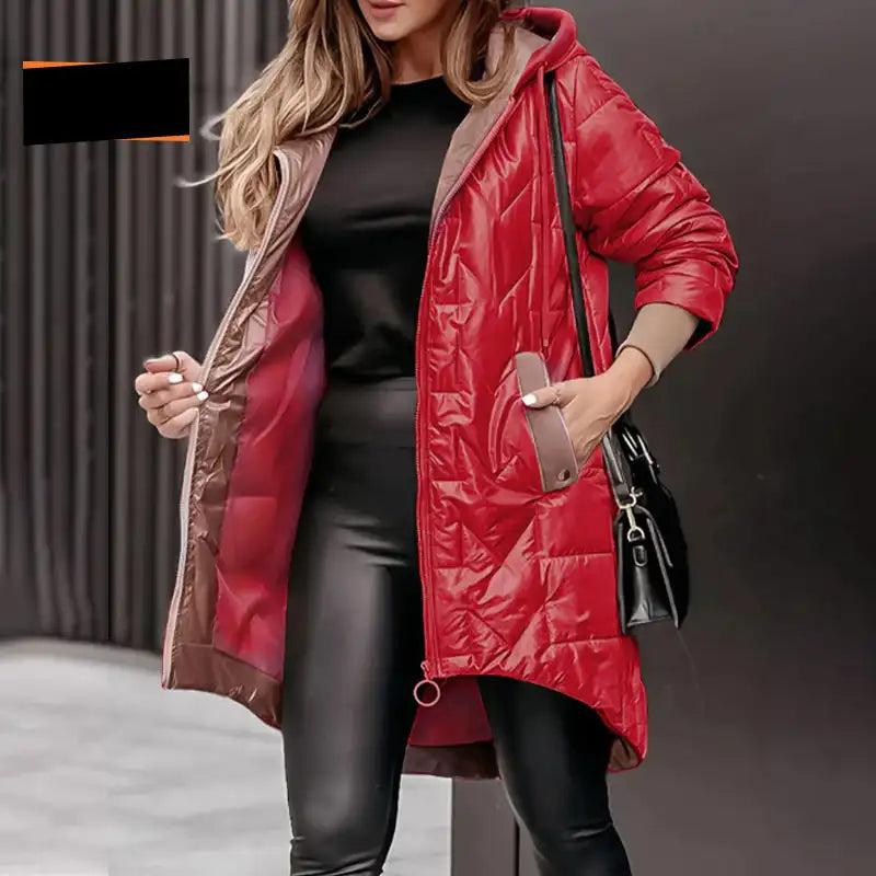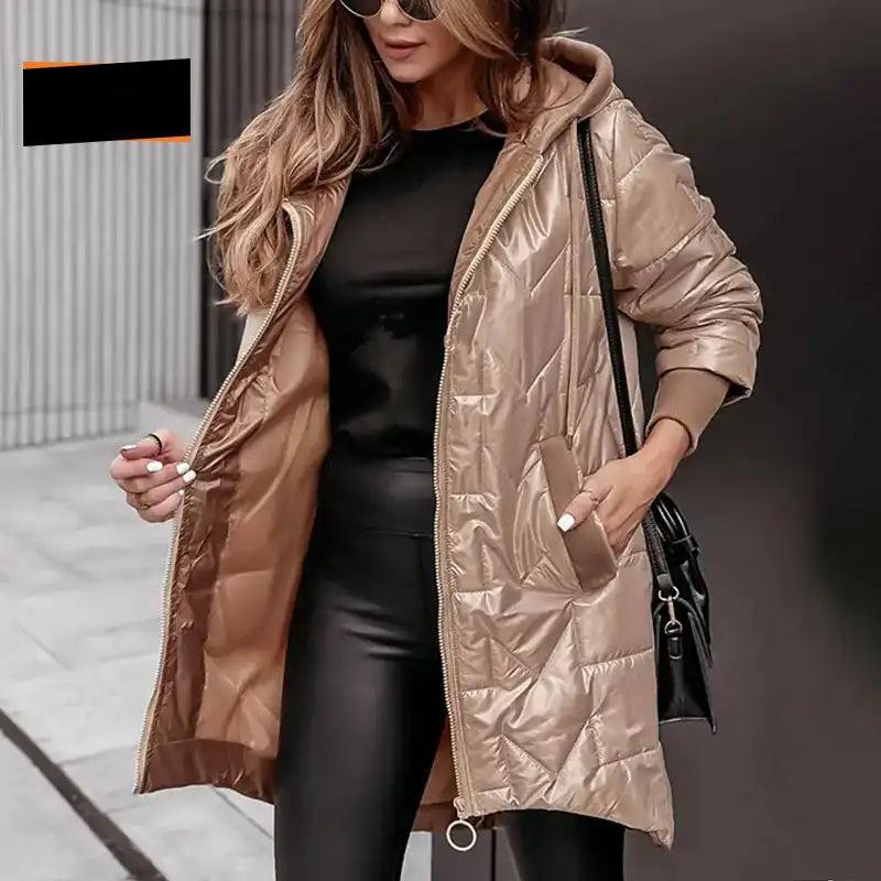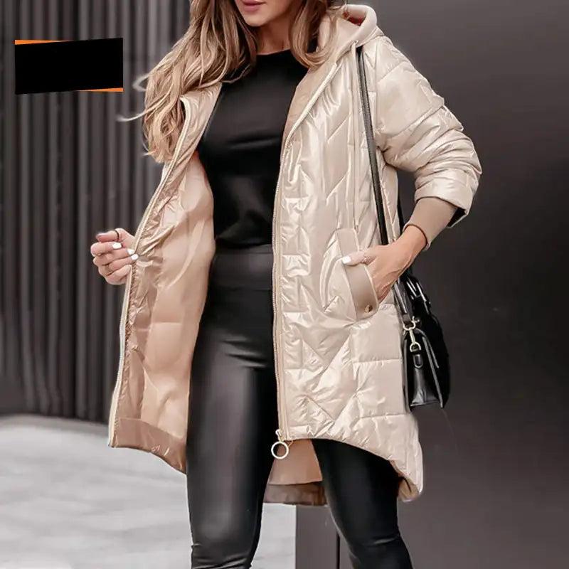 Lena - Elegant Langermet Kåpe med Glidelås, Hette og Praktiske Lommer