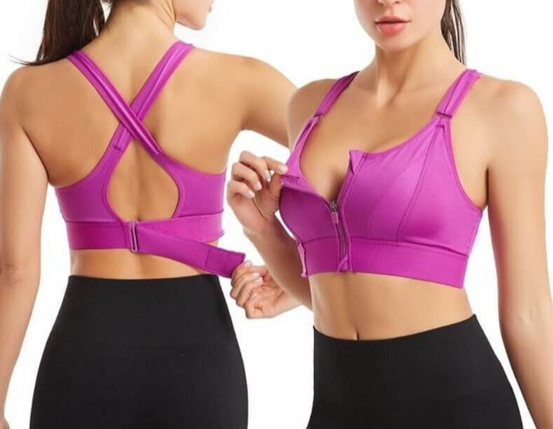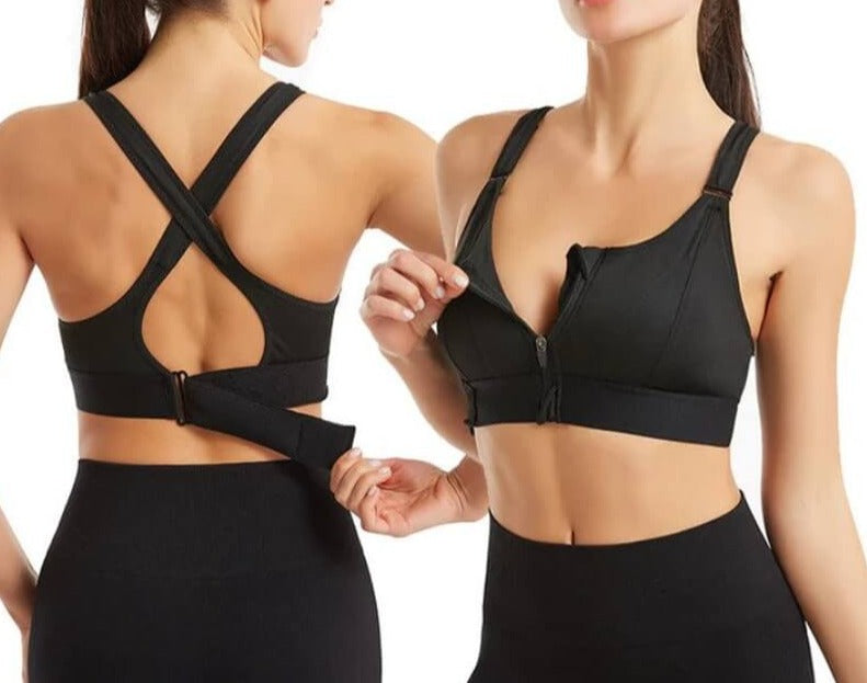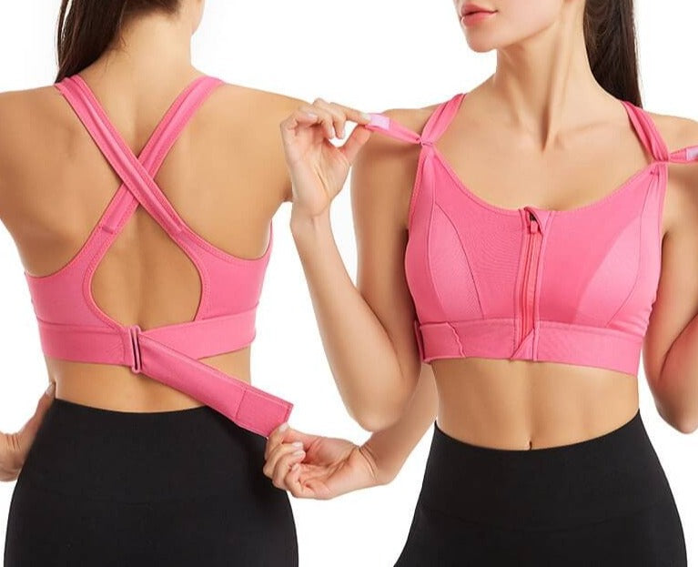 Denne sports-BH-en er laget av pustende, fukttransporterende stoff som sørger for at du holder deg kjølig og tørr. Designet med kryssstropper og glidelåslukking gir et elegant og stilig preg, samtidig som det øker komforten. Enten du løper, trener eller gjør yoga, støtter denne BH-en deg i alle bevegelser.