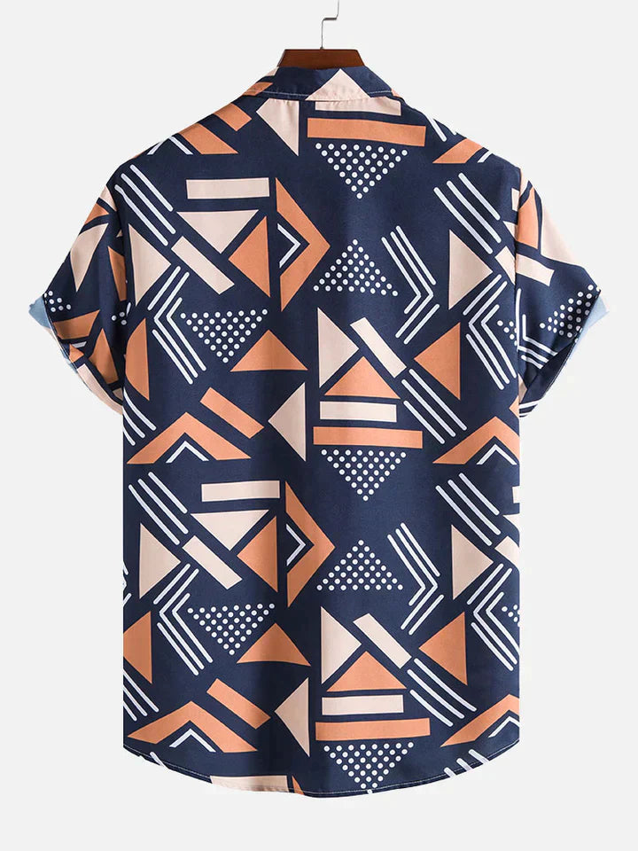 Denne skjorten har et dristig trekantet geometrisk mønster som tilfører en moderne touch til garderoben din. Designet for stilbevisste personer, tilbyr den en unik estetikk som skiller deg ut. Den iøynefallende designen gjør den til et fantastisk valg for de som ønsker å gjøre et statement samtidig som de nyter hverdagskomfort.