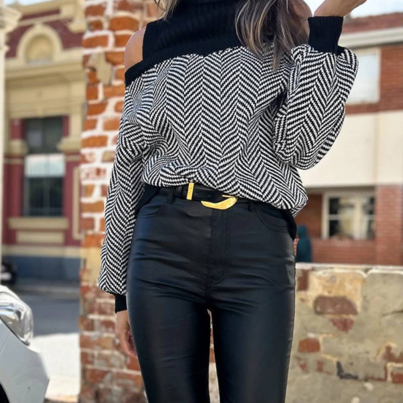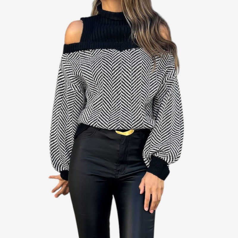 Genser med delte skuldre og høy krage