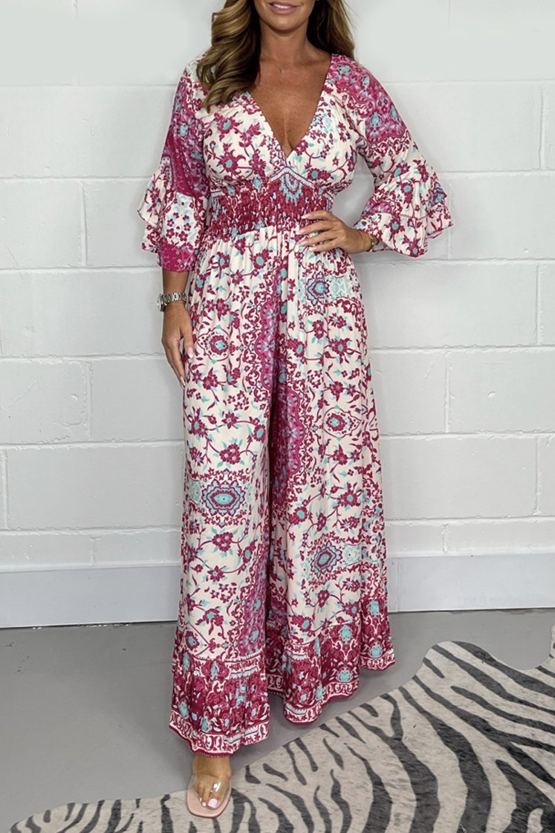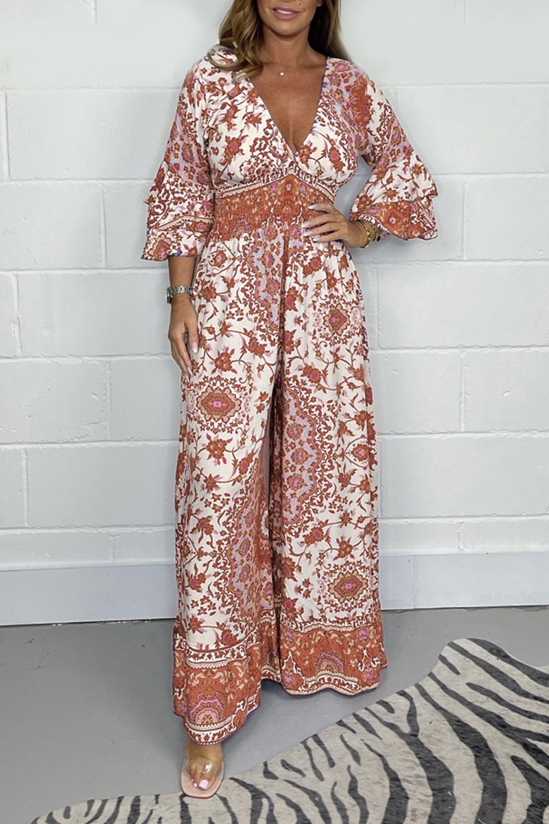 Lily - Avslappet Jumpsuit Med V Hals Og Trykk
