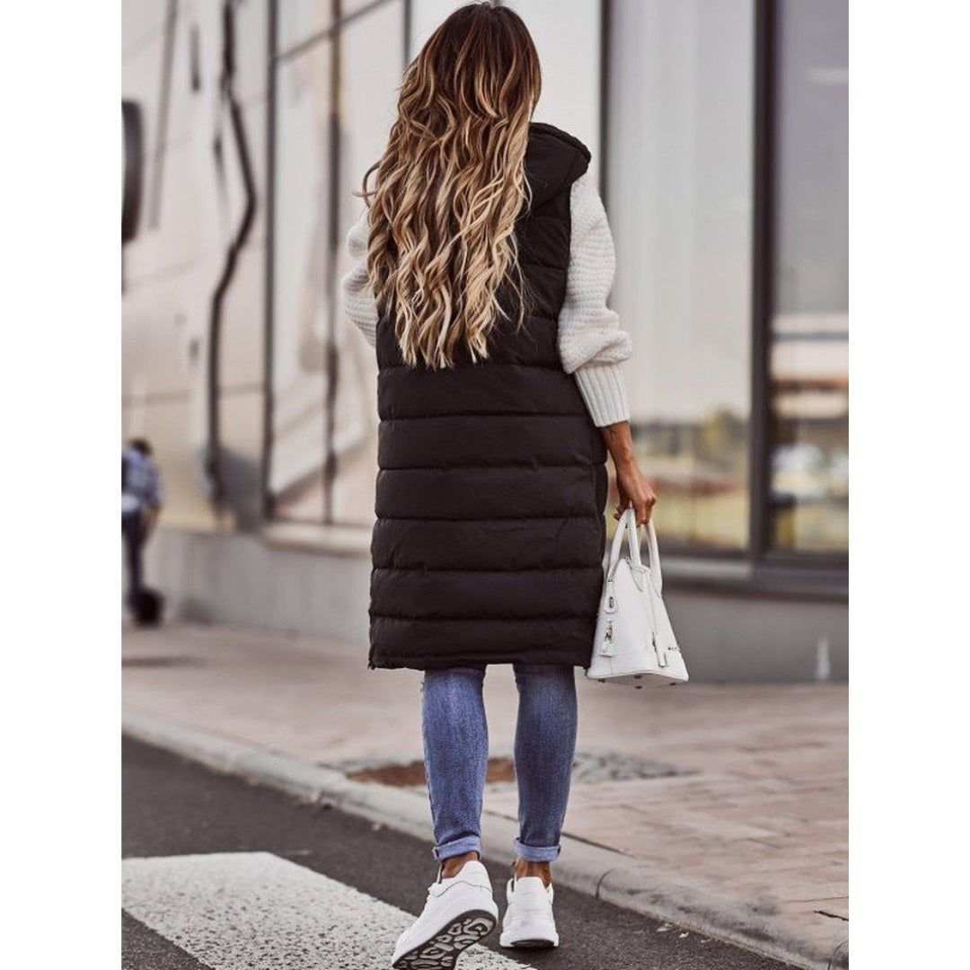 Lily - Elegant vattert vest i knelengde med glidelås foran og praktiske lommer