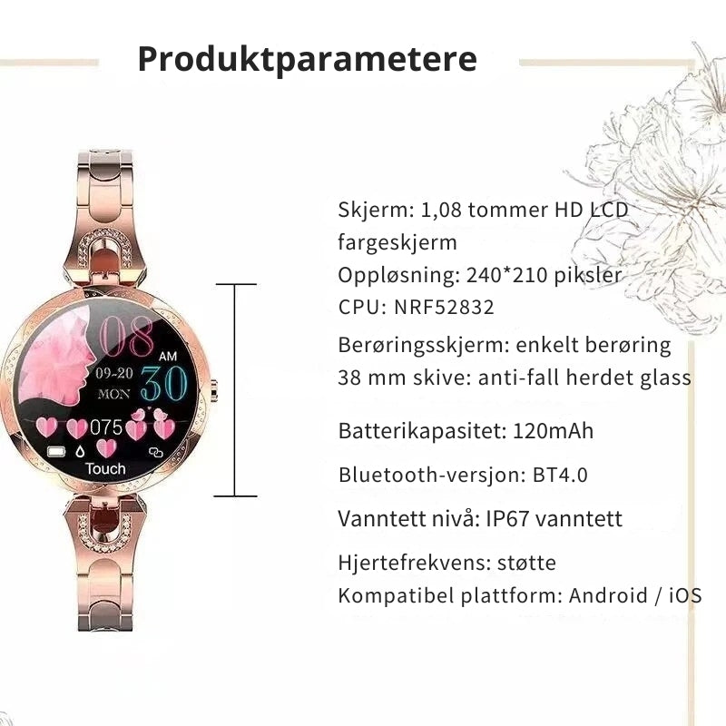 Denne elegante smartklokken er designet med kvinner i tankene, og hjelper deg med å overvåke helsen din gjennom ulike stadier av livet. Fra å spore menstruasjonssyklusen din til graviditet og morsstadier, fungerer den som en personlig helseassistent, og tilbyr viktig innsikt for å holde deg informert og styrket.
