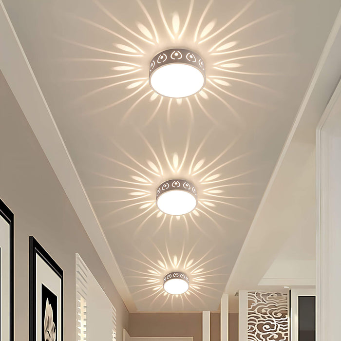 LumaGlow LED taklampe tilfører eleganse og myke visuelle detaljer til hjemmet ditt. Den kaster forsiktige, dekorative mønstre på tak og vegger, og skaper en varm og innbydende atmosfære som fremhever interiørstilen din. Perfekt for soverom, ganger eller stuer, gir den jevn belysning uten skarp gjenskinn, og tilfører en koselig og moderne følelse til ethvert rom.