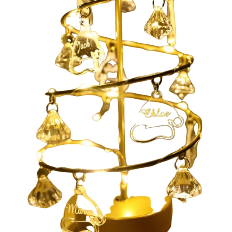 LumiTide er en festlig dekorativ lampe inspirert av silhuetten av et moderne juletre. Den fasetterte designen reflekterer lyset forsiktig og kaster en myk, omgivende glød som umiddelbart forsterker varmen i omgivelsene dine. Perfekt for hyller, inngangspartier eller sidebord, tilfører den sesongbasert sjarm uten behov for oppsett.
