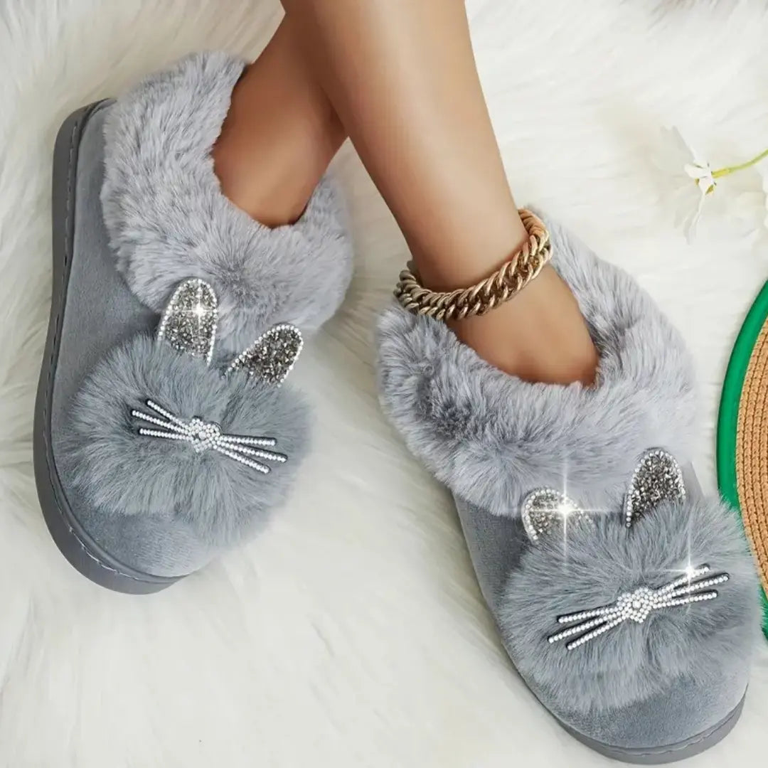 Luna - Bedårende tøfler med kattemotiv og strassdetaljer