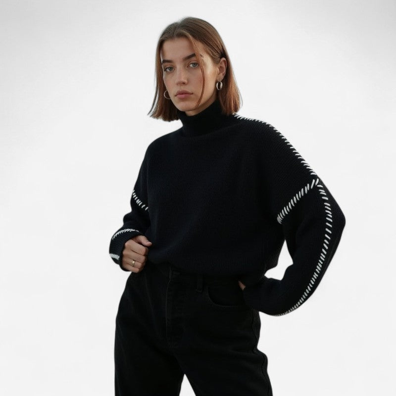 Maja turtleneck genser tilbyr en komfortabel passform med lange ermer og høy krage for full dekning. Det enkle designet gjør den ideell for lag-på-lag og for hverdagsbruk hjemme, på jobb eller under uformelle utflukter.