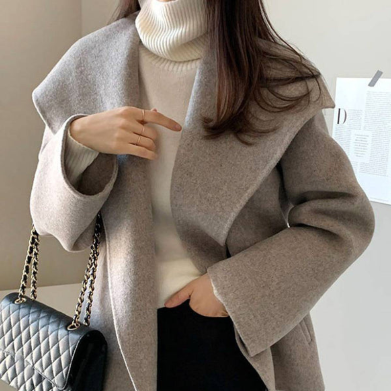 Malin-kåpen kombinerer tidløst design med moderne eleganse, med et flatterende belte i livet og praktiske lommer. Den mellomlange lengden og de lange ermene gir et polert uttrykk, perfekt for lag-på-lag på kjøligere dager.