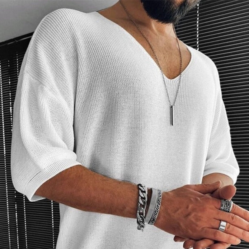 Mark – Kortermet V-hals Skjorte med Løs Passform