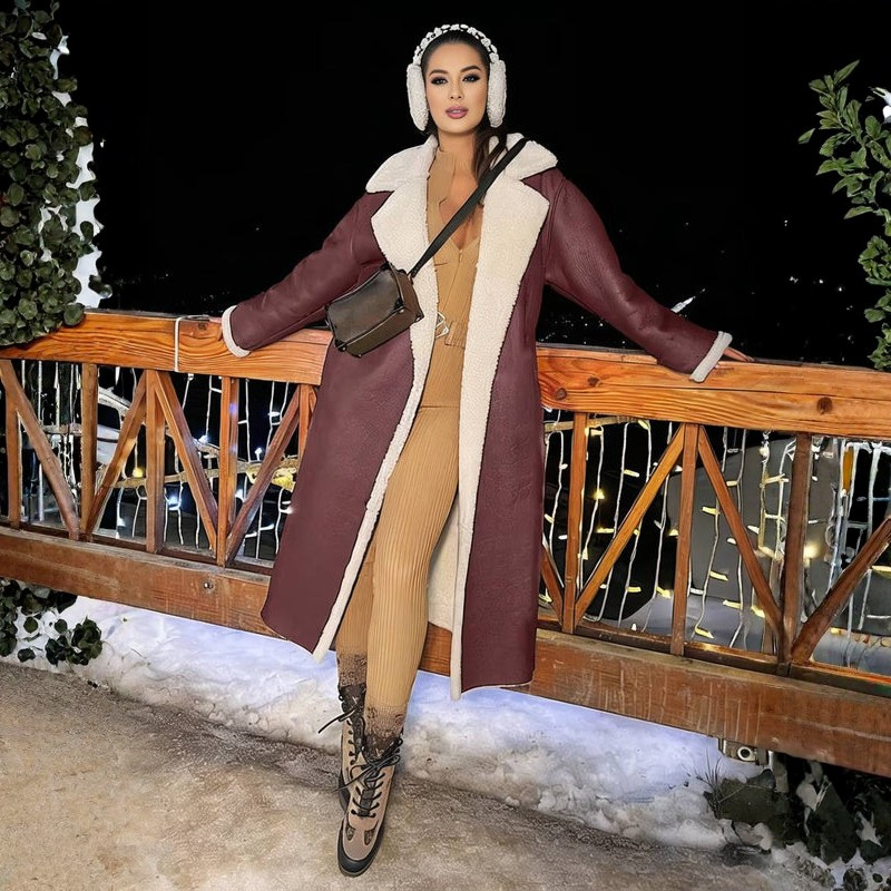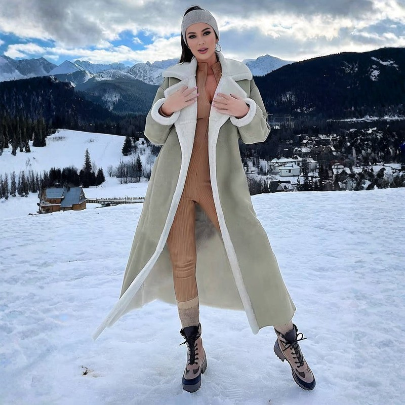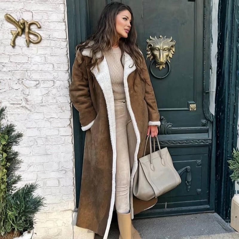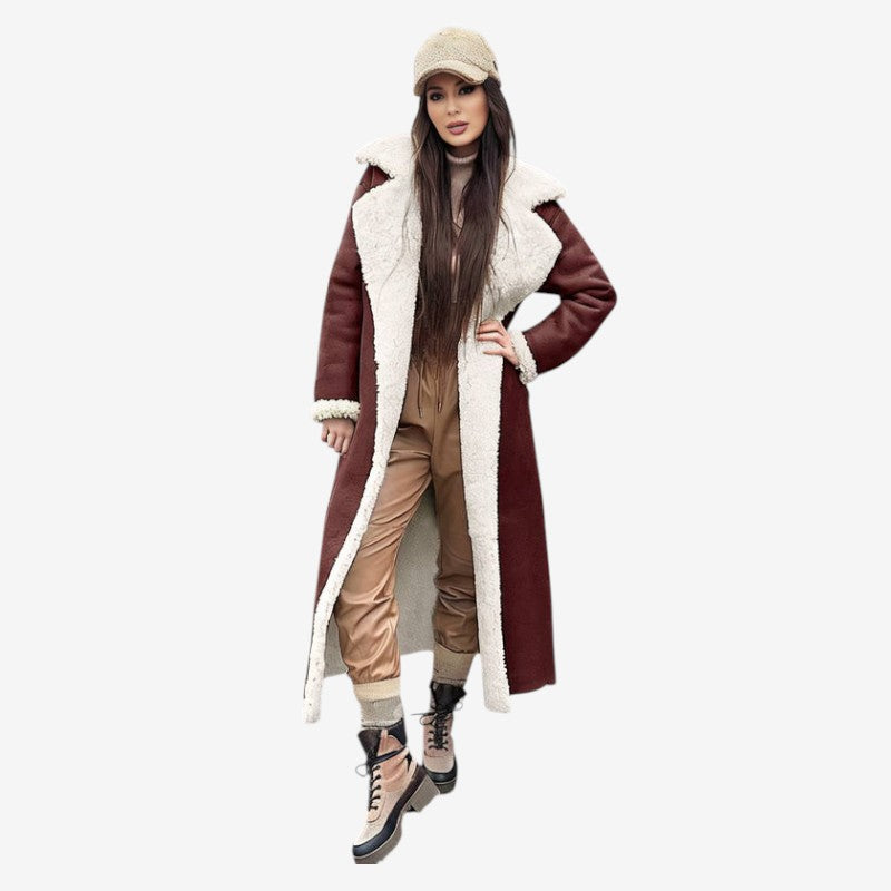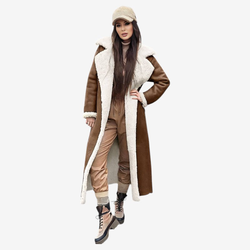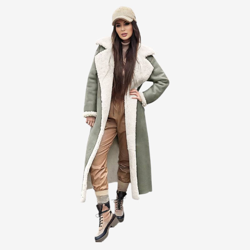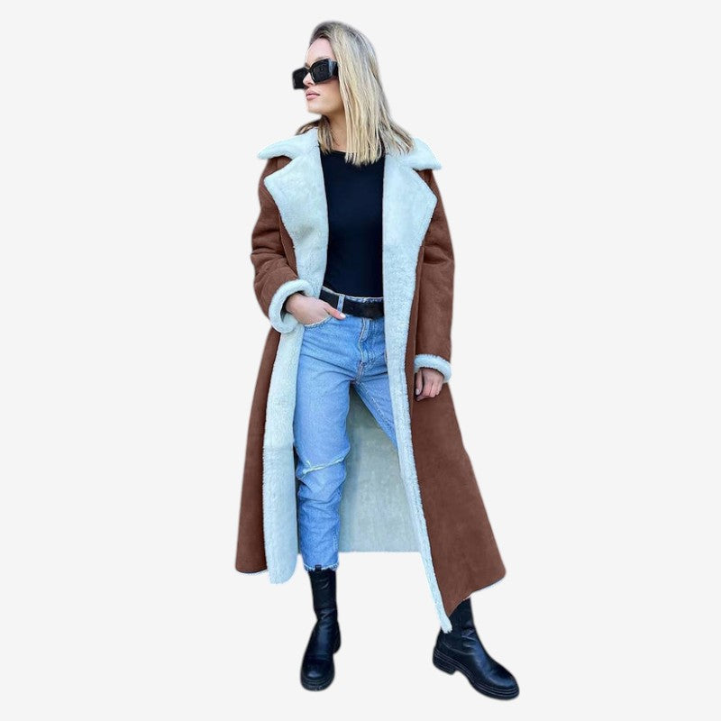 Marthe – Lang kåpe med lommer jakkeslag og lange ermer