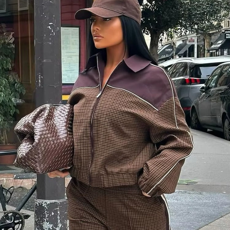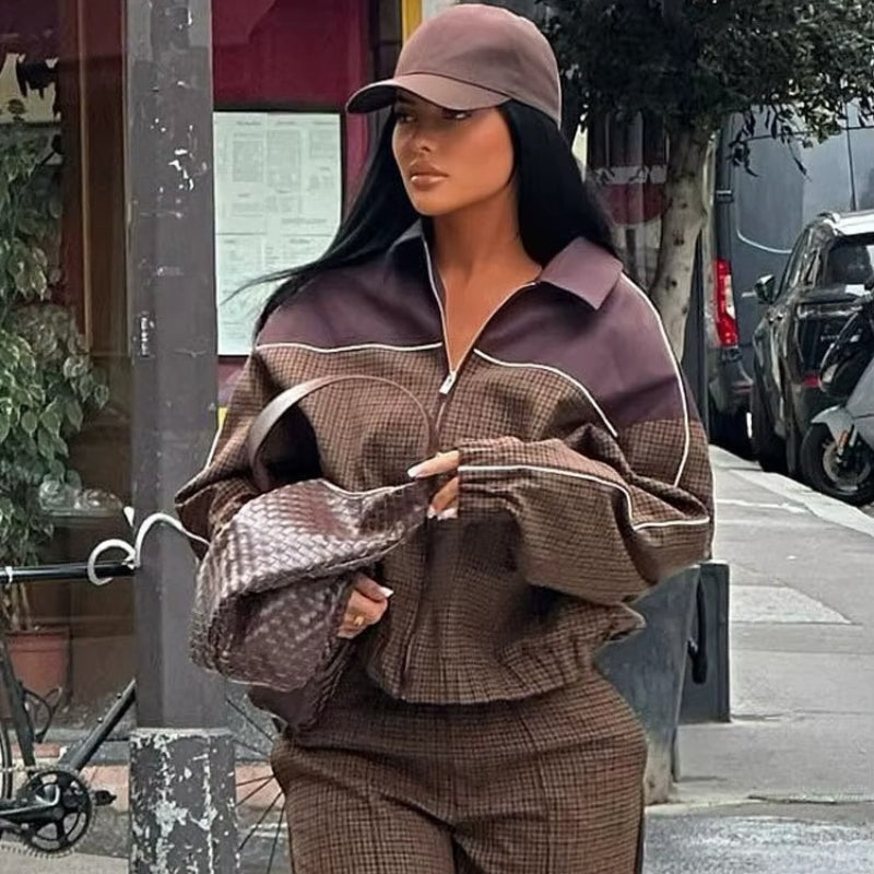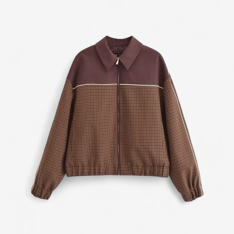 Mila-jakken har glidelåslukking foran og en nedfellbar krage. Den har lange ermer og et rett snitt som gir en balansert struktur. Designet er rent og symmetrisk, med minimale detaljer.