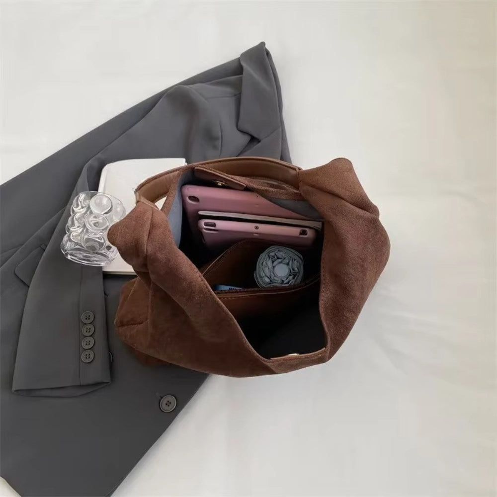 Denne skuldervesken er laget av polyester og har et praktisk håndtak på toppen. Den har en rektangulær form med ett hovedrom og en tydelig åpning øverst. Vesken har en jevn utvendig overflate og en strukturert form.