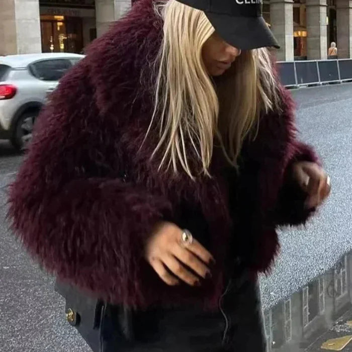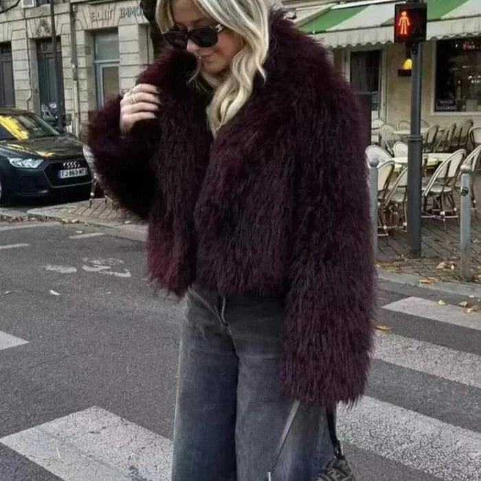 Nathalie-jakken i fuskepels kombinerer en myk tekstur med en avslappet, løs passform for uanstrengt komfort. De lange ermene dekker godt, mens det elegante designet gir et stilig preg til ethvert antrekk.