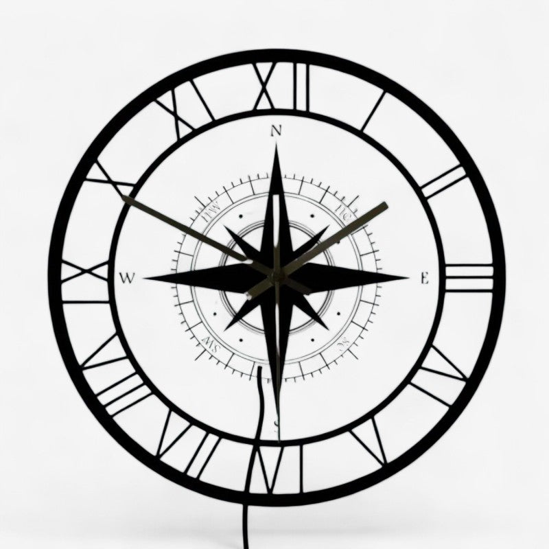 Denne veggklokken inspirert av kompass tilfører et maritimt tema til ethvert interiør. Den runde formen og kartlignende detaljene gjør den både funksjonell og dekorativ. Perfekt for stuer, kontorer eller temarom, fungerer den som et særpreget innslag samtidig som den viser nøyaktig tid.