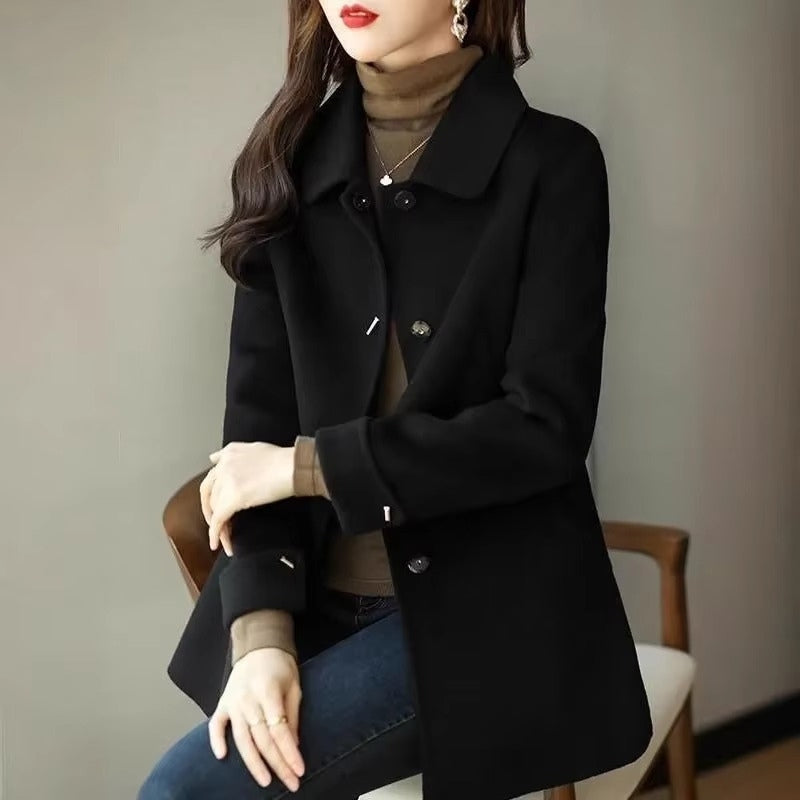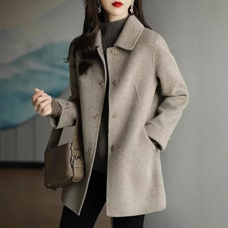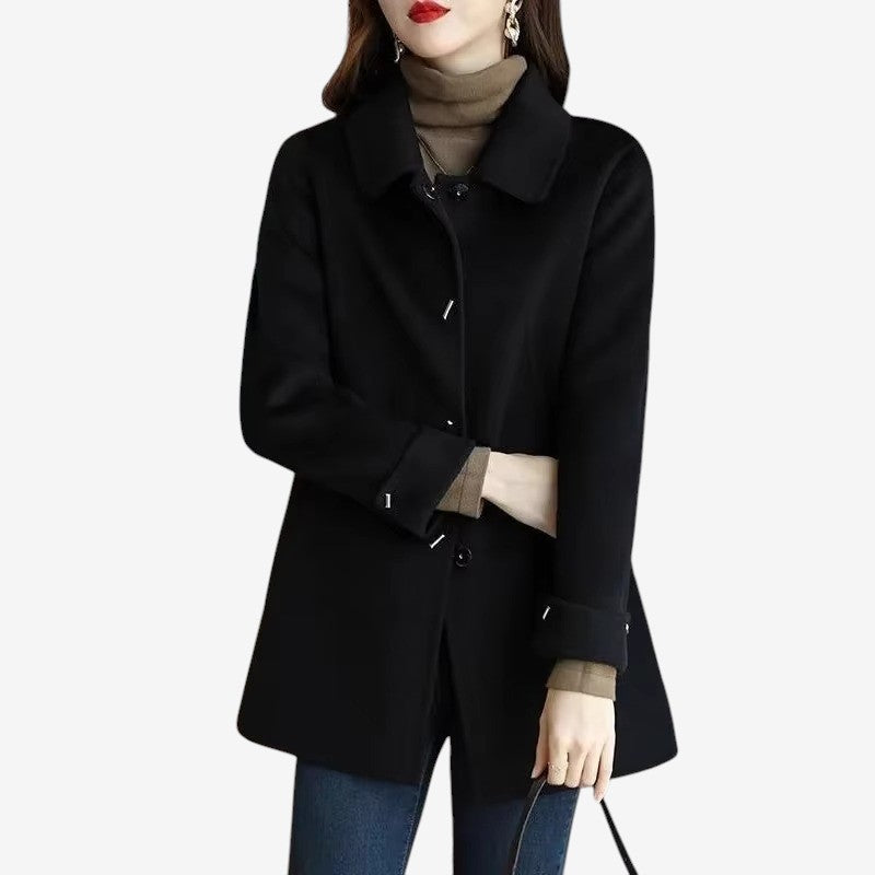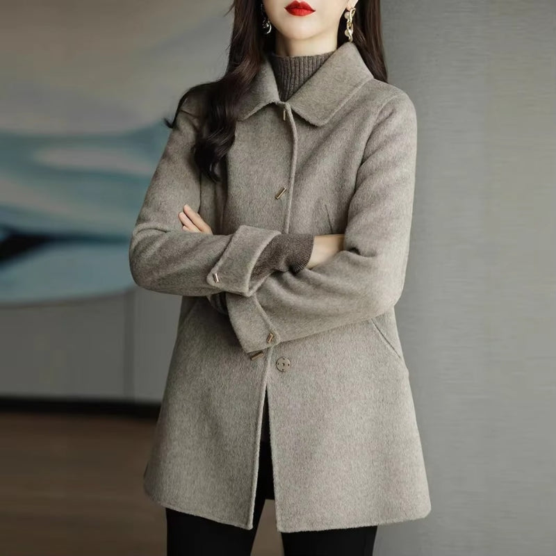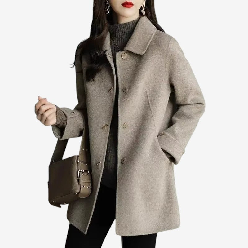 Nora-kåpen har lange ermer, brettet krage, knappelukking foran og sidelommer. Den rette silhuetten gir et rent og strukturert uttrykk som skaper et balansert og velorganisert utseende. Minimal detaljering bevarer et klassisk design som passer til daglig bruk.