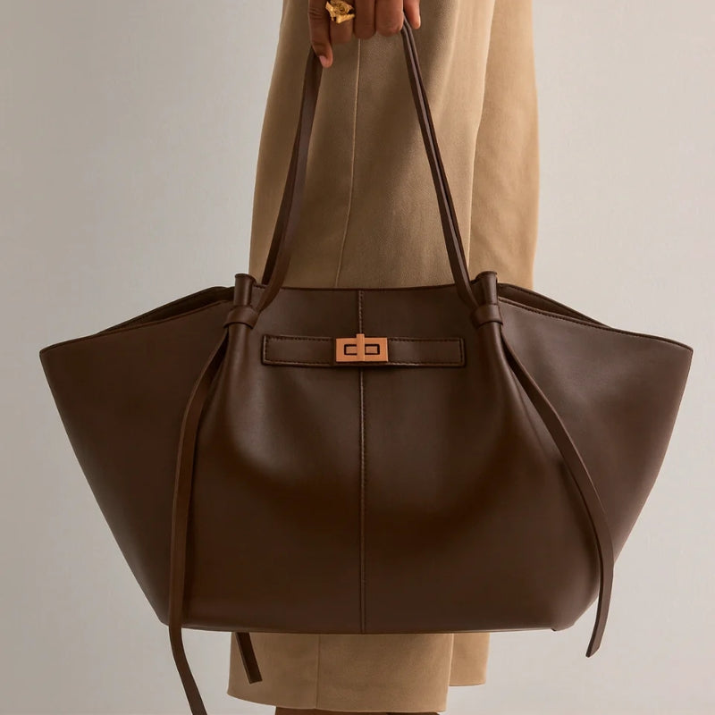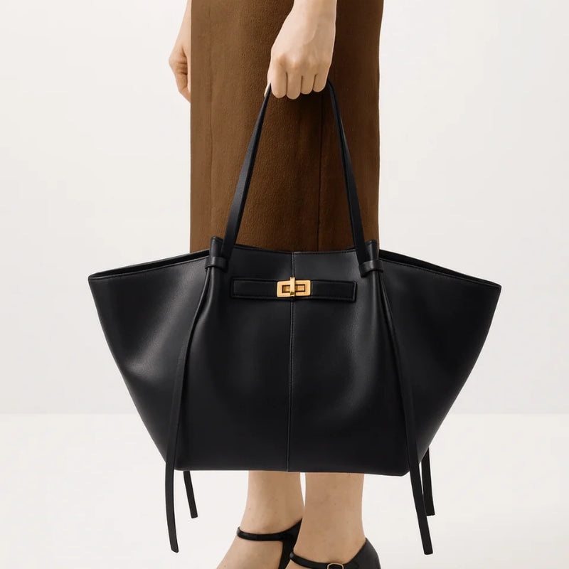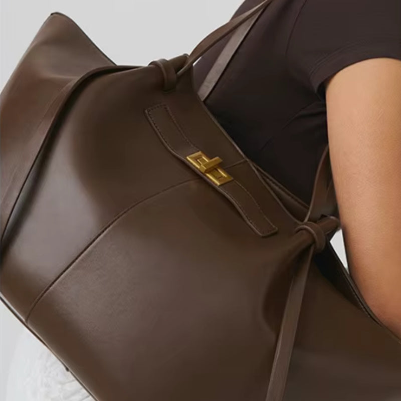 Denne håndvesken med stor kapasitet har en justerbar stropp og et solid håndtak, noe som gjør den praktisk å bære på ulike måter. Det romslige designet gir plass til daglige nødvendigheter samtidig som den beholder en enkel og allsidig stil.