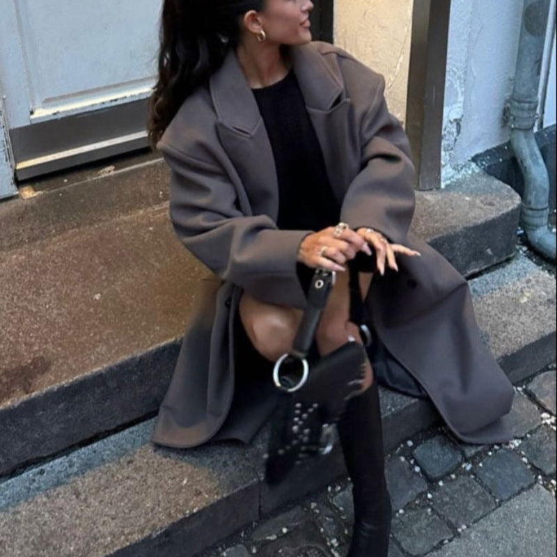 Sigrid - Langermet Frakk i Full Lengde med Knapplukking