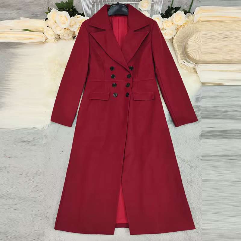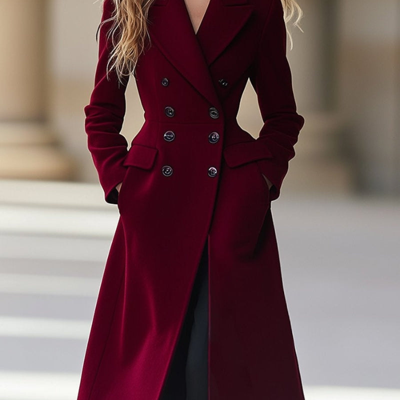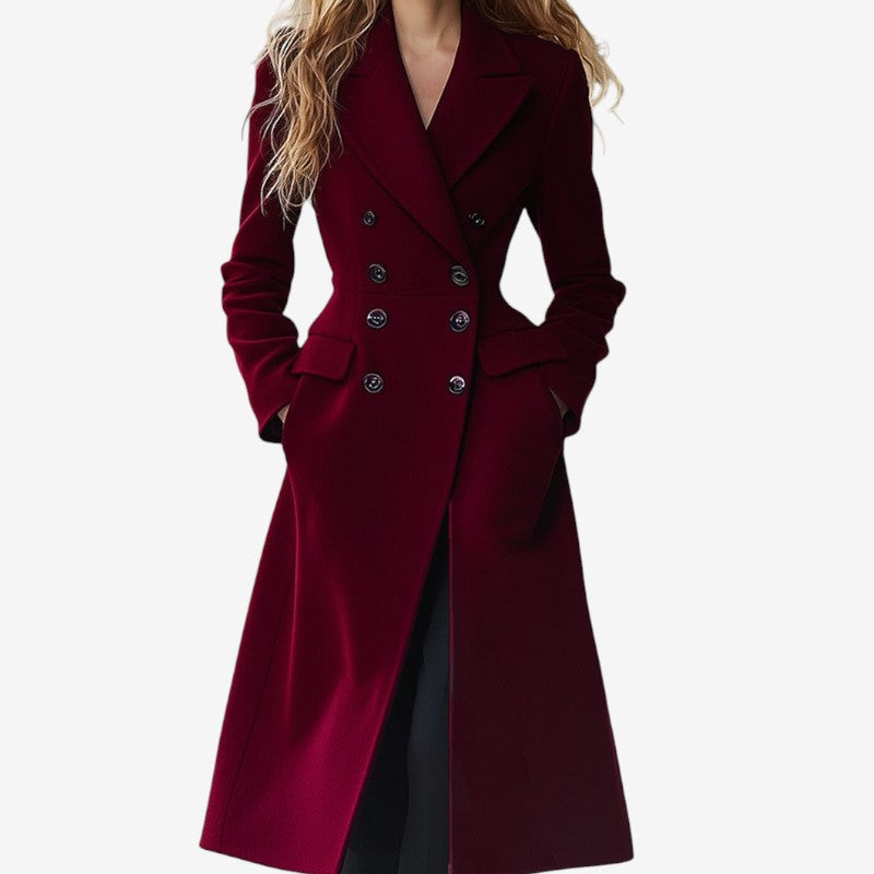 Sophia – Langermet kåpe med slagkrage og doble knapper