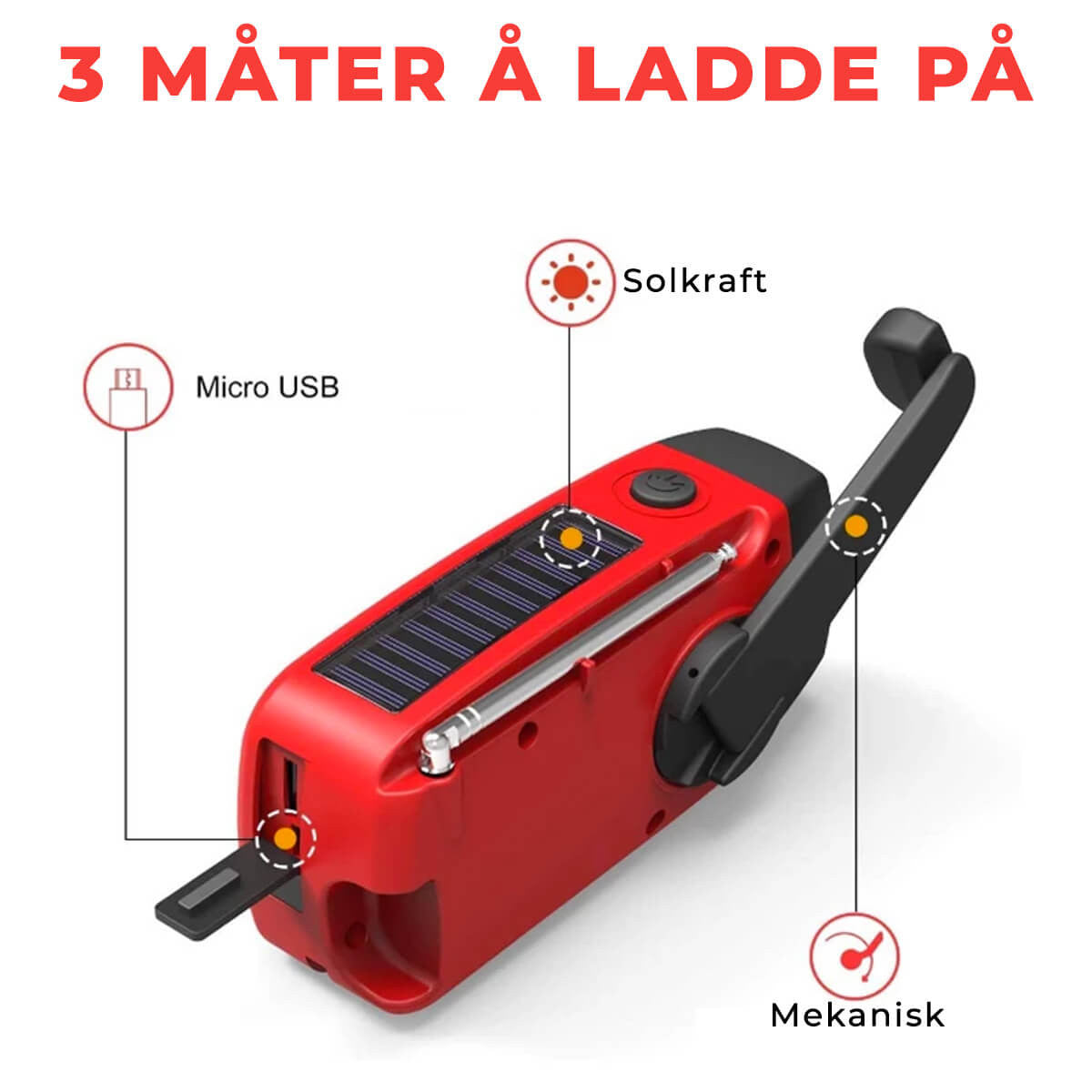 StormGuard - Nødradio med sveiv og solcellepanel og strømbank