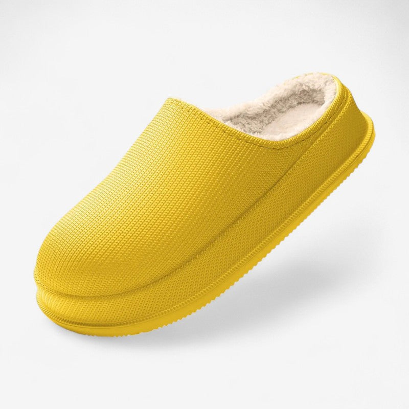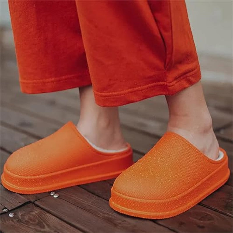 Disse tøflene har en avrundet tå og en flat hælsåle. Designet inkluderer en glatt overdel og en enkel silhuett, noe som gir fottøyet et rent og definert utseende.